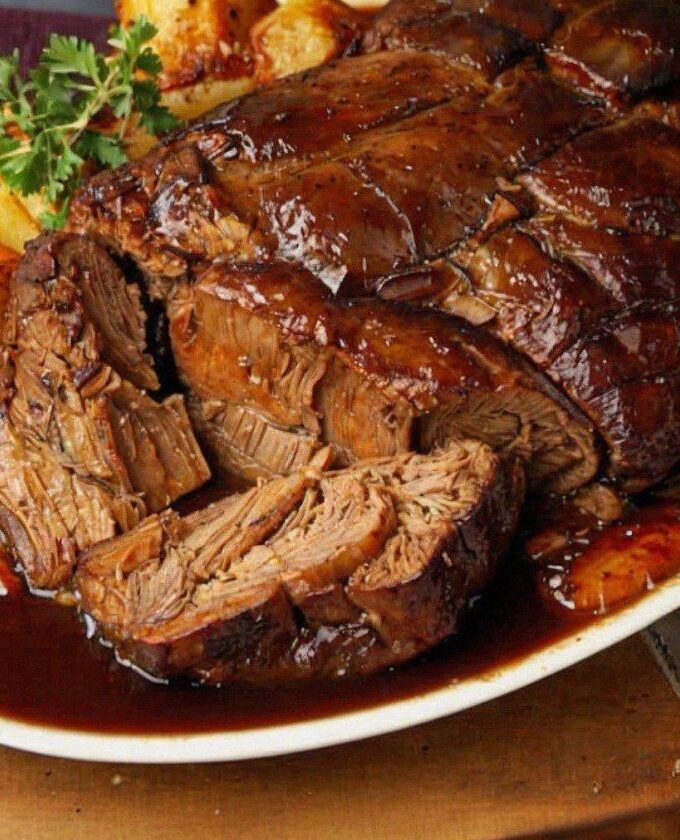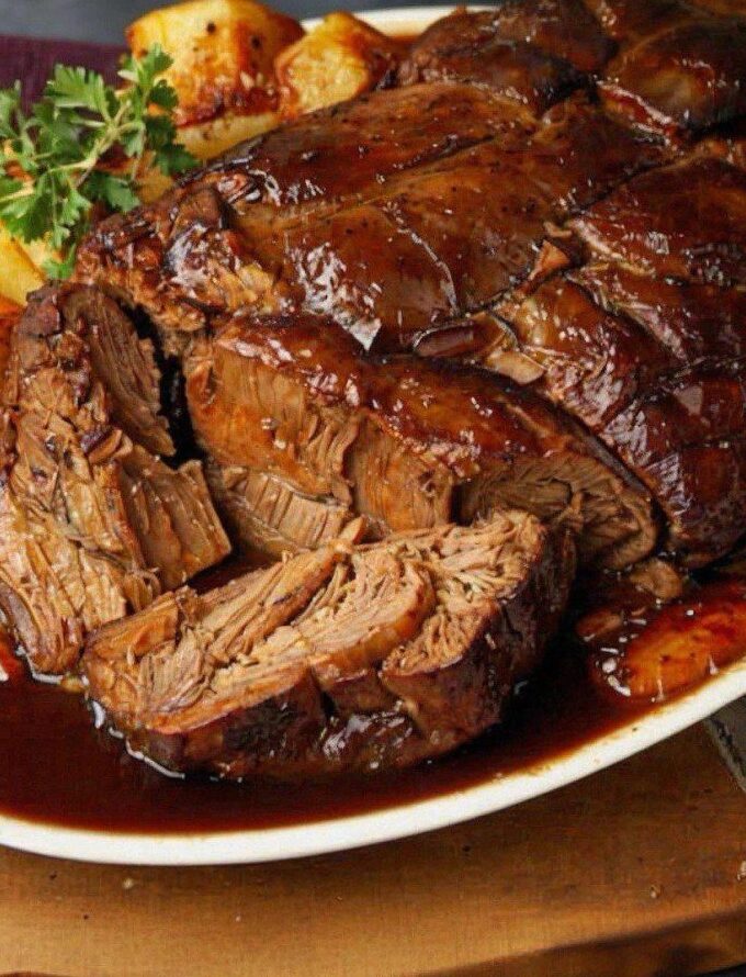 5. Serve: Shred or slice the beef. Spoon over gravy. Garnish with chopped parsley if you like.