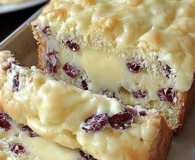 Creamy Cranberry Custard Loaf is a beautiful comfort bake that combines a tender, buttery crumb with bursts of tart cranberries and a luscious cream cheese custard center. Each slice reveals a soft cake exterior and a creamy middle, making it perfect for holidays, brunch, or cozy afternoons.