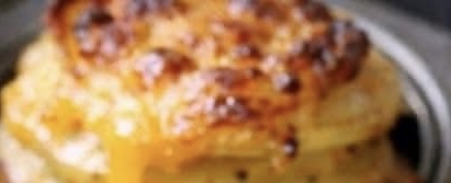 Layer potato slices into muffin cups, adding a little cheddar cheese every few layers.