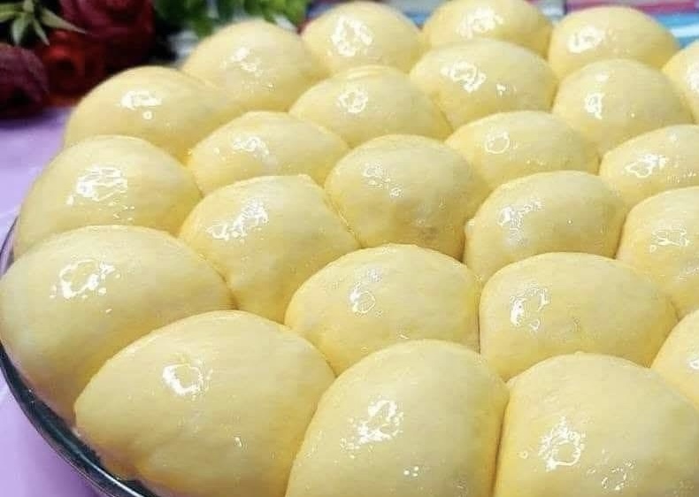 Gently punch down the risen dough. Divide it into 15 to 20 equal pieces. Roll each piece into a smooth ball and place them in a greased baking pan, spaced slightly apart.